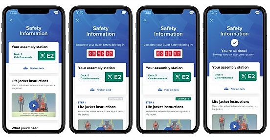 Royal Caribbean nastavil aplikáciu pre smartfóny tak, aby bola v súlade s medzinárodnými zákonmi o námornej bezpečnosti, ktoré vyžadujú, aby všetci cestujúci na lodi boli oboznámení s tým, kam ísť, čo robiť a ako sa správať v prípade núdze na mori.