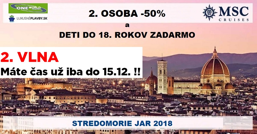 1. osoba platí plnú sumu a 2. osoba v kajute iba 50%!!