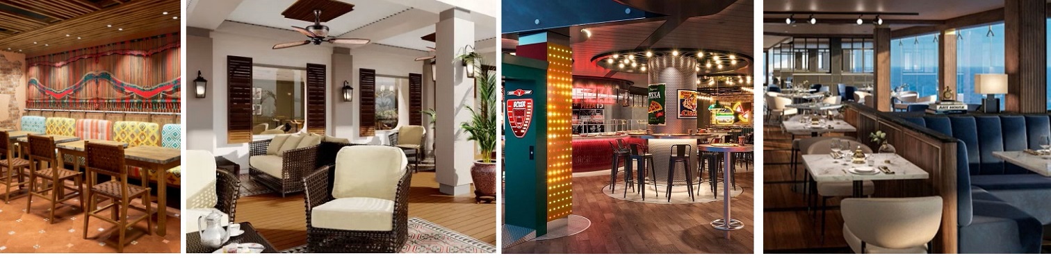 • NOVINKA! Chef’s Garden Kitchen je oázou pre gurmánov. Špecializuje sa na chutnú sezónnu kuchyňu s čerstvou zeleninou pestovanou hydroponicky priamo na palube. Bylinky, mikrogreens a svieža zelenina je zároveň ultimátnym dizajnovým prvkom, dotvárajúcim pozadie tejto reštaurácie. K dispozícii je aj sedenie na otvorenej terase.