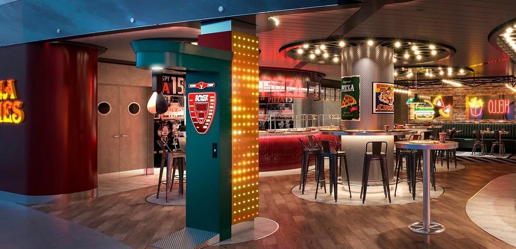 • NOVINKA! Luna Park Pizza & Burger je neformálny bufet pre všetky generácie, s výrazným interérom. Interaktívny zážitok zahŕňa rodinné hry a vtipný jedálny lístok v klasickom americkom štýle od “coney dogs” a slaných praclíkov, až po lávové koláče.