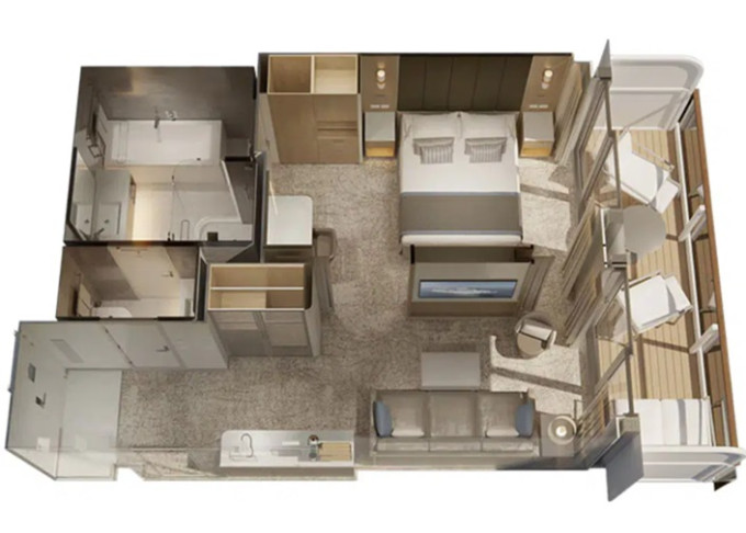 C2 - Reserve Cabana Mini Suite 30 m² (vrátane 3 m² lounge a 3 m² balkónu). 9. paluba. Výhody Reserve Collection a Výhody Mini Suite. 3 924 € 1 962 € za osobu