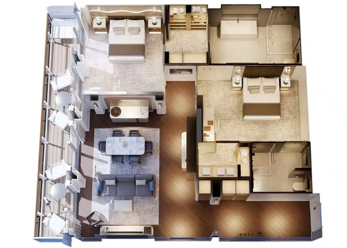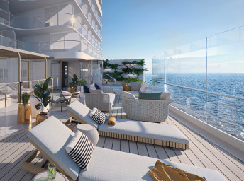 S0 - Signature Sky Suite 117 m² (vrátane 14 m² balkónu). 16. paluba vzadu. Max 5 osôb, Výhody Signature Suite. 25 786 € 12 893 € za osobu