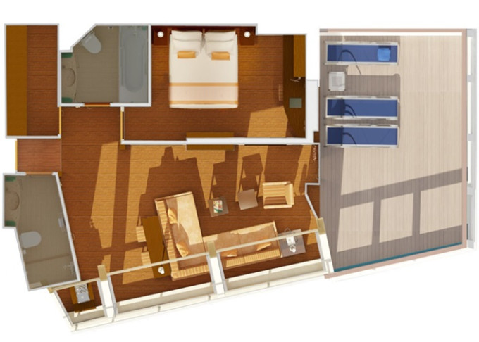 GS - Grand Suite 32 m² + balkón 8 m². 7. paluba stred. Výhody Suite. 2 012 € 1 006 € za osobu