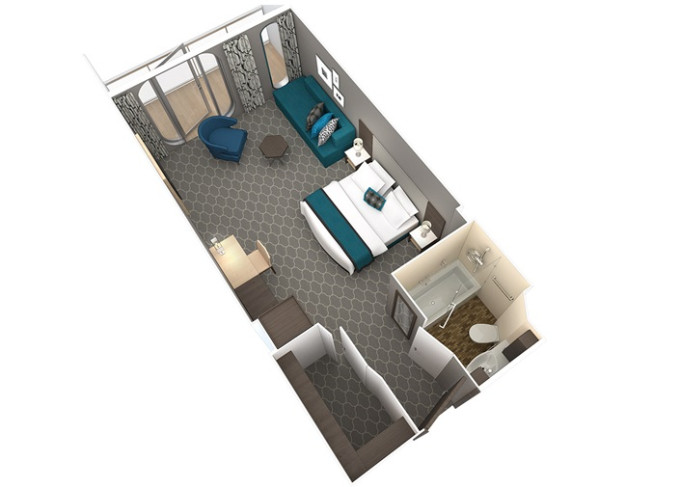 3D - Kajuta s balkónom 17 m² + balkón 4,5 m². 6. až 14. paluba. Max 2 osoby. 3 572 € 893 € za osobu
