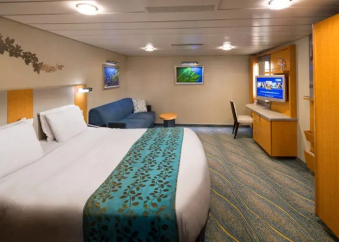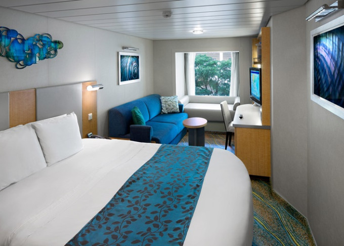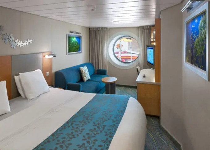 2T - Vnútorná kajuta s oknom / Promenade View 18 m². Neotvárateľné okno (výhľad na Royal Promenade). 7. paluba stred, vzadu. Max 5 osôb. 2 712 € 678 € za osobu