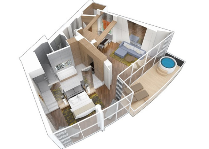 A1 - Suite AquaTheater Spacious / 2 spálne 76,5 m² + balkón 76 m². 8. paluba. Max 8 osôb. Výhody Royal Suite Star Class. 12 112 € 3 028 € za osobu