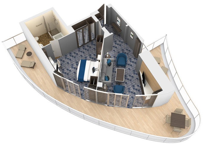 1A - Veľká kajuta s veľkým balkónom Ultra Spacious 25 m² / balkón 7,5 m². 7,11. paluba. Max 6 osôb. 3 359 € 3 359 € za osobu