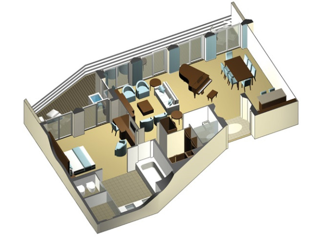CS - Celebrity Suite 32 m² + balkón 10 m². 10,11. paluba. Max 4 osoby.Výhody Suite The Retreat. 34 972 € 8 743 € za osobu