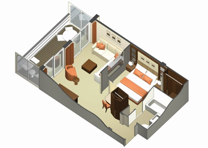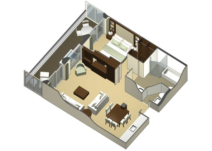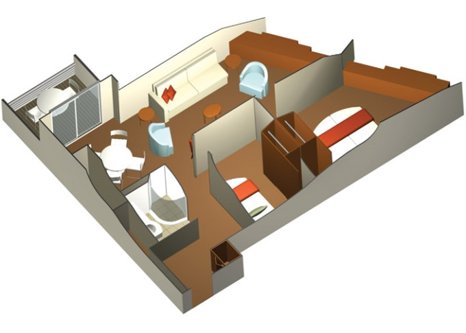 S1 - Sky Suite 28 m² + balkón 7 m². 6. až 12. paluba. Max 4 osoby. Výhody Suite The Retreat. 19 972 € 4 993 € za osobu