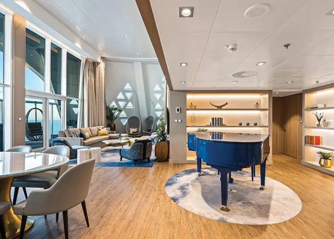 OS - Owner’s Suite 52 m² + balkón 23 m². 18. paluba. Max 4 osoby. Výhody Royal Suite Sky Class. | 5 287 € 5 287 € za osobu |