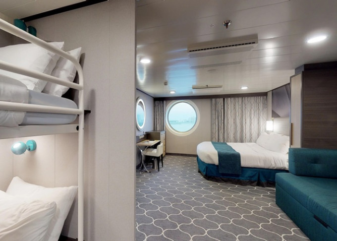 1K - Veľká vonkajšia kajuta Ultra Spacious 25 m². Neotvárateľné okno. 11. paluba. Oddelená časť s poschodovou posteľou. Max 6 osôb | 3 408 € 852 € za osobu | ||