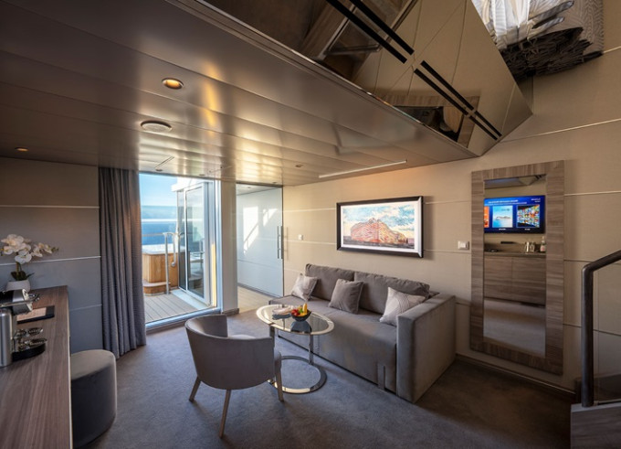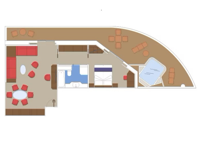 YC4 - Owner's Suite Yacht Club 78-104 m² + balkón 48 m². Vírivka. 2 podlažia, šatník, 2 kúpeľne (1 s vaňou). Max 4 osoby. 16.-18. paluba. Cenový model MSC Yacht Club. | 16 464 € 8 232 € za osobu | ||