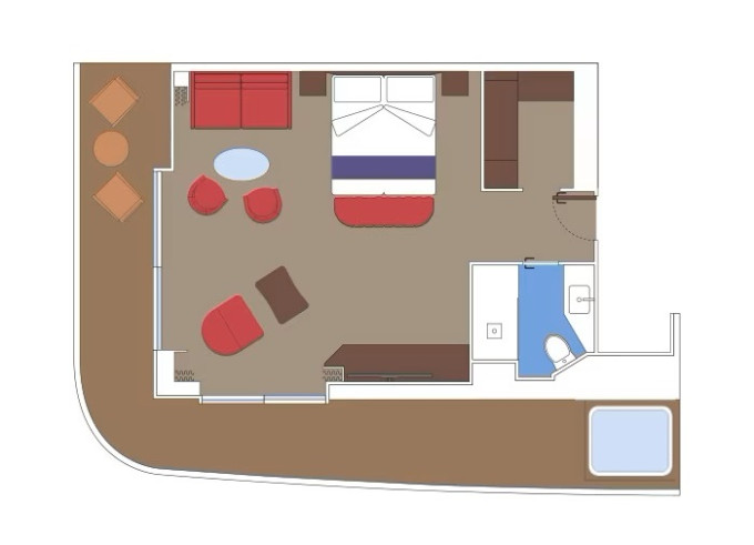 SXJ - Grand Suite Aurea s vírivkou 35 m² + terasa 37 - 46 m². Vírivka. 15 - 16. paluba. paluba. Cenový model Aurea | 5 803 € 5 803 € za osobu |