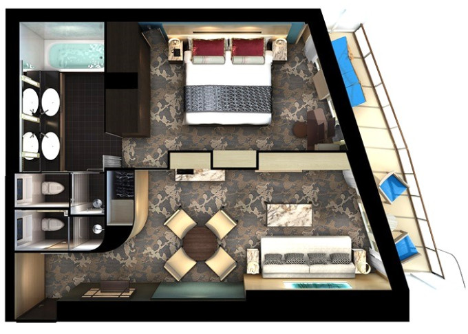 HB - The Haven Aft-facing Penthouse Suite 57-62 m² / balkón 17-23 m². 9,12,15. paluba vzadu. Max 4 osoby. Výhody The Haven. | 3 418 € 1 709 € za osobu | ||