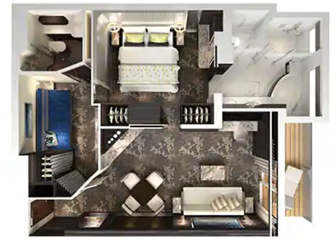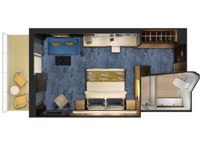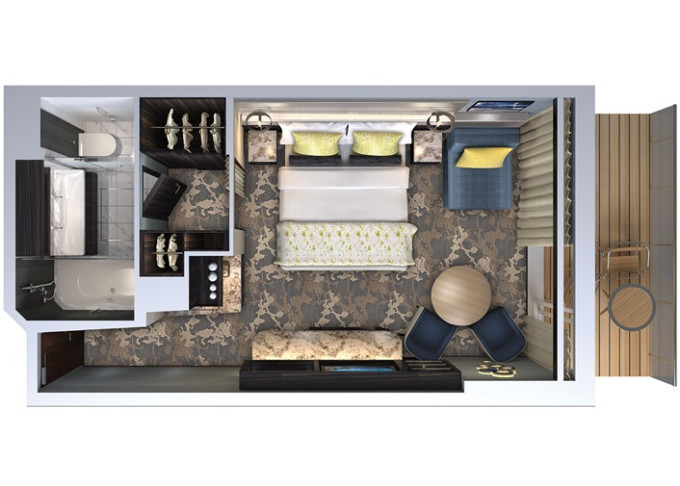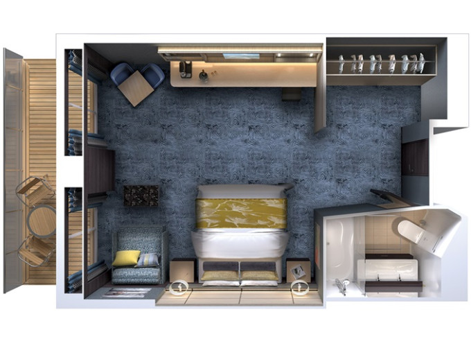 HJ - The Haven Suite s balkónom 35 m² / balkón 5 m². 14. paluba - stred. Max 4 osoby. Výhody The Haven. | 2 520 € 1 260 € za osobu |