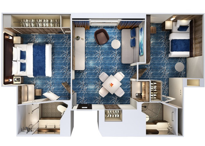 H6 - The Haven Family Villa - 2 spálne 50 m² / balkón 4 m². 18. paluba vpredu. Max 6 osôb. Výhody The Haven. | 4 198 € 2 099 € za osobu | ||