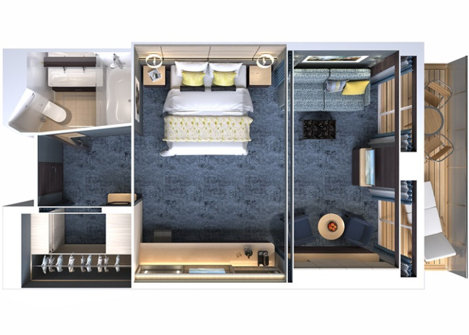 H5 - The Haven Family Villa - 2 spálne 5 m² / balkón 11 m². 17. paluba - vpredu. Max 6 osôb. Výhody The Haven. | 4 068 € 2 034 € za osobu | ||
