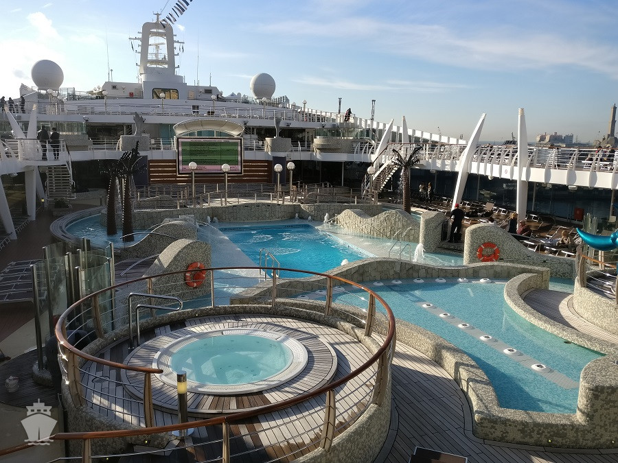 - Používanie zariadení lode: bazény, vírivky a lehátka, plážové osušky, fitnescentrum ...
