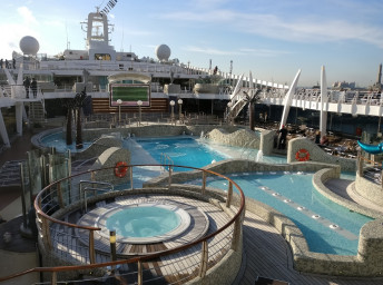 - Športové aktivity na otvorených palubách (jogging, basketbal, futbal, tenis), bazény a ležadlá