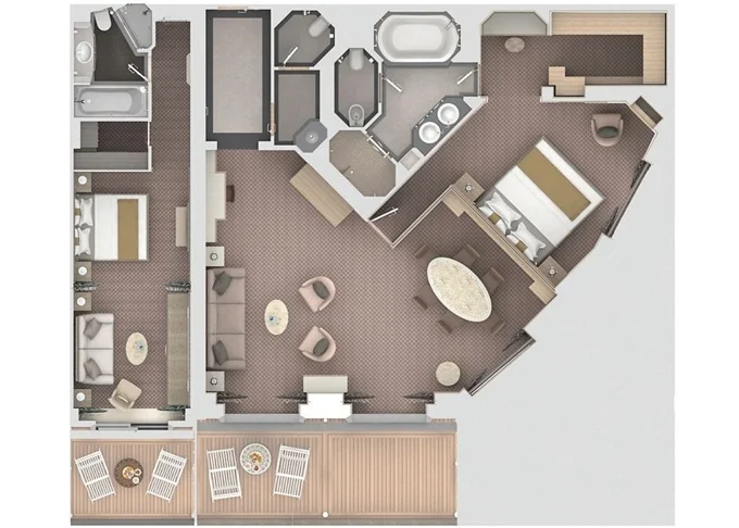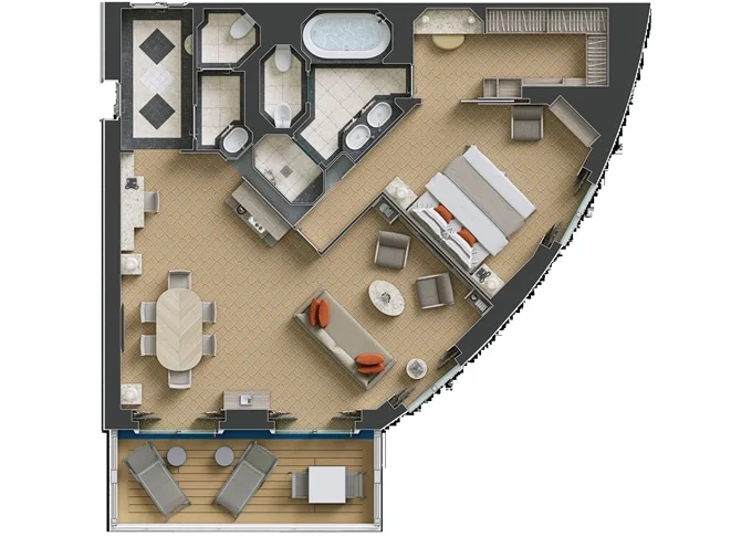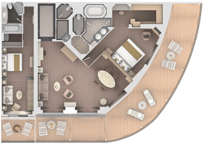 R1 - Royal Suite 1 105 m² (vrátane balkónu). 7. paluba vpredu. Max 3 osoby. | 61 500 € 20 500 € za osobu |