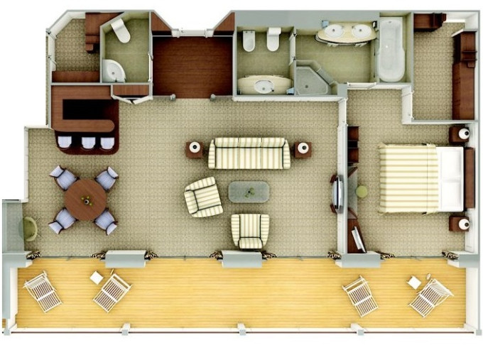 SL - Silver Suite 61-65 m² (vrátane verandy). 7. paluba. Max 3 osoby. 105 900 € 35 300 € za osobu