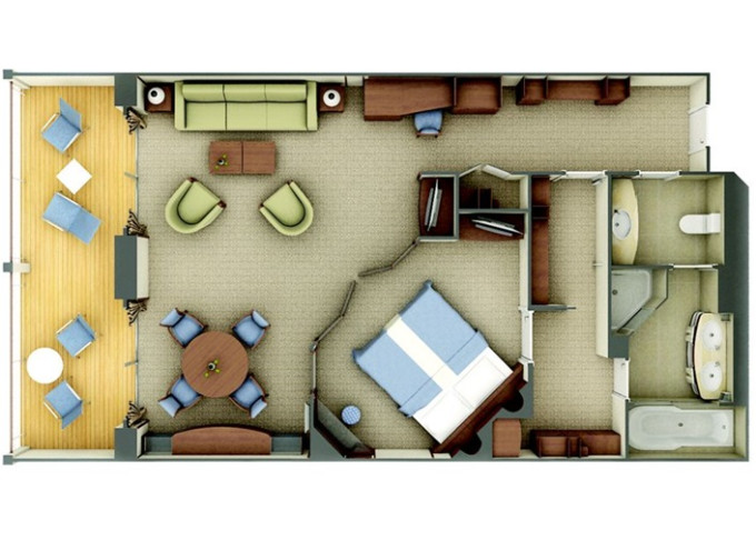 SV - Superior Veranda Suite 32 m² (vrátane balkóna 6 m²). 5.až 8. paluba. Max 3 osoby. 34 200 € 17 100 € za osobu