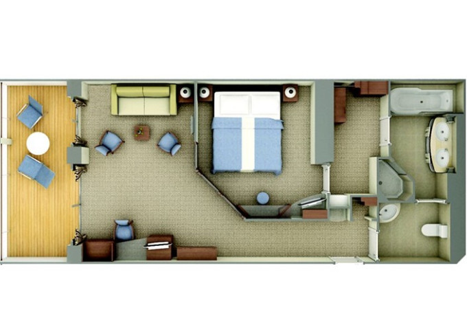 DX - Deluxe Veranda Suite 32 m² (vrátane balkóna 6 m²). 6,8. paluba. Max 3 osoby. 35 800 € 35 800 € za osobu
