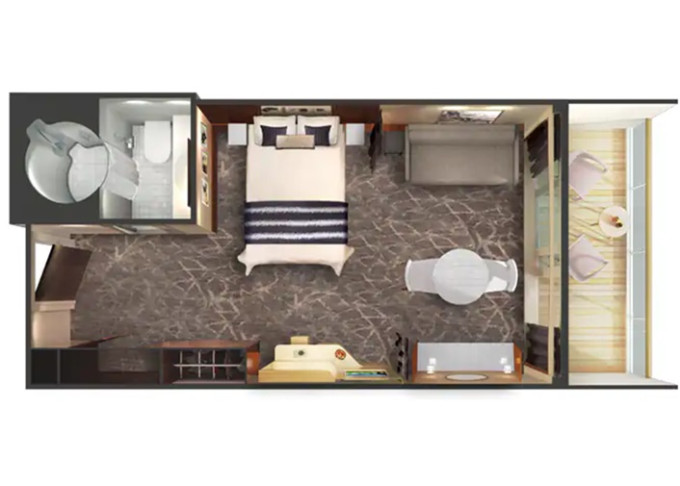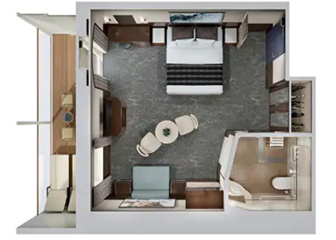 SE - Forward-facing Penthouse 51-52 m² / balkón 18-22 m². 8,9. paluba - vpredu. Max 3-5 osôb. Výhody Suite. | 37 904 € 18 952 € za osobu | ||