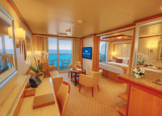 DC - Kajuta s balkónom Deluxe 22 m² (vrátane balkóna). Max 3-4 osoby (gauč + 1 horné lôžko). 12 366 € 6 183 € za osobu